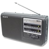 The Sony FM-AM 2-Band Portable Radio features a precise and sensitive tuning dial that makes it easy to pull in the stations you want to hear. The high/low tone dial provides enhanced sound quality. Dual Power - runs by A/C plug (included) or 4 AAbatteries (not included.) The large hinged back panel opens to reveal the battery compartment and cord storage area, where the cord may be folded neatly and stored while using battery power. Great for the beach, park, ballgame, camping, fishing, boating or anywhere power isn't readily accessible. Specifications: Built-in 3.5mm earphone jack for privacy (earphone not included.) 3-5/8 Diameter Speaker 1-Year Limited Manufacturer's Warranty Dimensions: 9-1/4 Long x 5-1/4 High x 2-1/2 Wide Weight: 1.95 lbs.